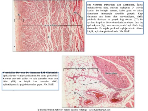 epikardiyum (Ep), ince mezotelyumla kaplı fibröz bağ