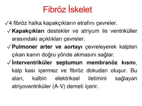 ✓4 fibröz halka kapakçıkların etrafını çevreler.