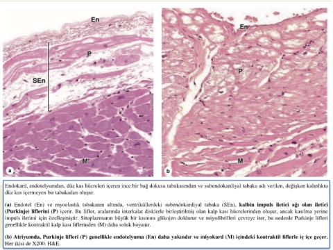 (a) Endotel (En) ve myoelastik tabakanın altında, ventriküllerdeki subendokardiyal tabaka (SEn), kalbin impuls iletici ağı olan iletici