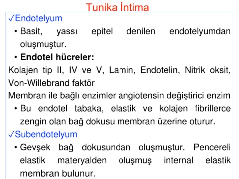 • Bu endotel tabaka, elastik ve kolajen fibrillerce
