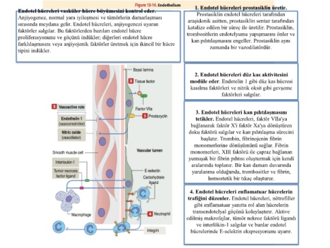 faktörler salgılar. Bu faktörlerden bazıları endotel hücre trombositlerin endotelyuma yapışmasını önler ve