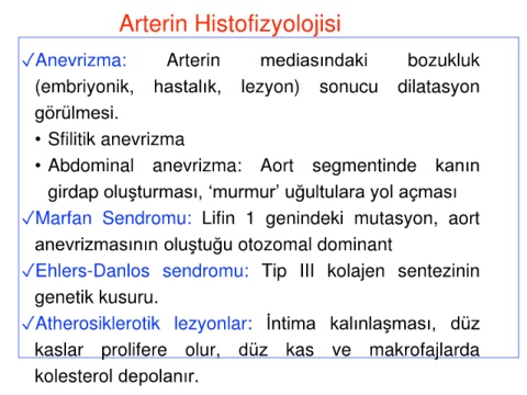 ✓Anevrizma: Arterin mediasındaki bozukluk
