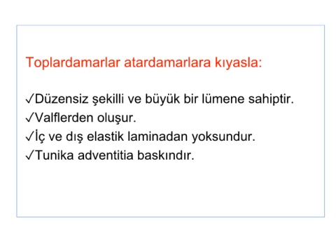 Toplardamarlar atardamarlara kıyasla: