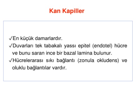 ✓Duvarları tek tabakalı yassı epitel (endotel) hücre