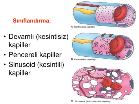 Sınıflandırma; • Devamlı (kesintisiz) kapiller • Pencereli kapiller • Sinusoid (kesintili) kapiller