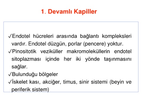 vardır. Endotel düzgün, porlar (pencere) yoktur.
