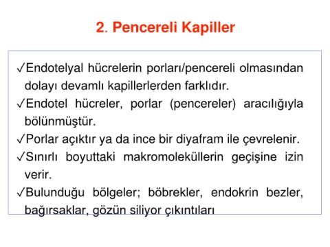 ✓Endotelyal hücrelerin porları/pencereli olmasından