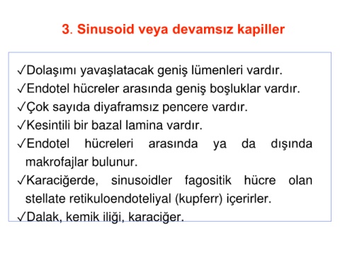 ✓Endotel hücreler arasında geniş boşluklar vardır.