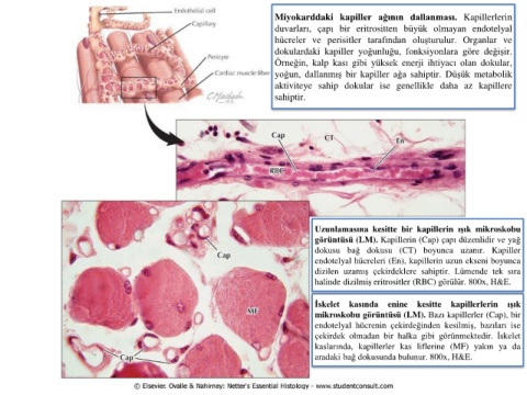 dokulardaki kapiller yoğunluğu, fonksiyonlara göre değişir.