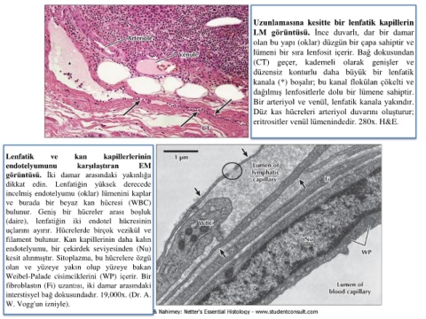 Uzunlamasına kesitte bir lenfatik kapillerin