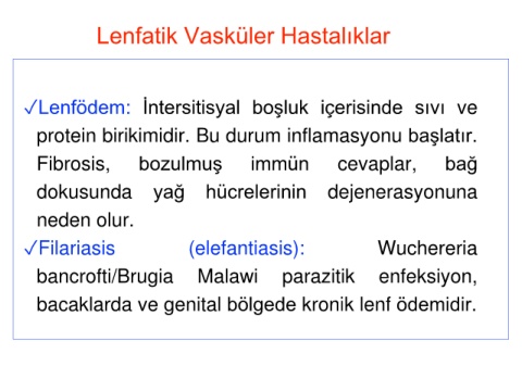 ✓Lenfödem: İntersitisyal boşluk içerisinde sıvı ve