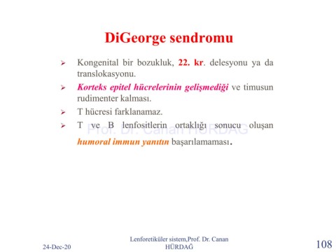 ➢ Kongenital bir bozukluk, 22. kr. delesyonu ya da