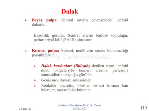 ➢ Beyaz pulpa: Sentral arterin çevresindeki lenfoid