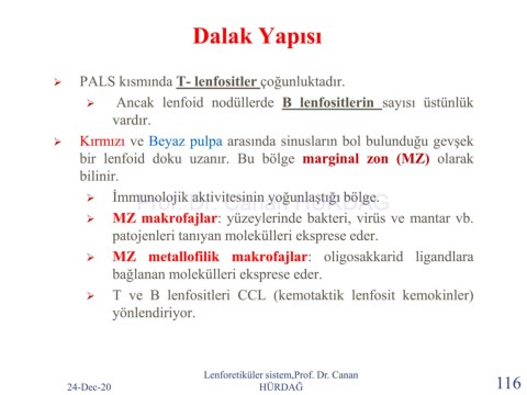 ➢ PALS kısmında T- lenfositler çoğunluktadır.