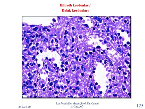 Billroth kordonları/ Dalak kordonları Prof. Dr. Canan HURDAG Lenforetiküler sistem,Prof. Dr. Canan 24-Dec-20 HÜRDAĞ 125