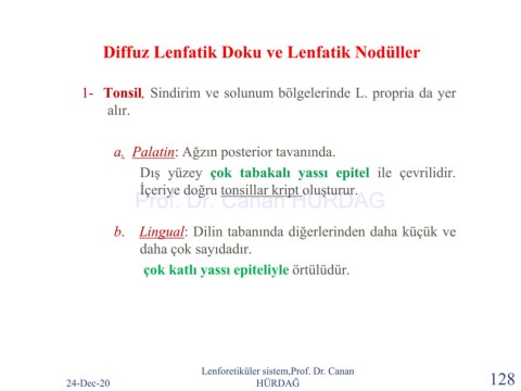 1- Tonsil, Sindirim ve solunum bölgelerinde L. propria da yer