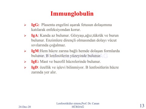 ➢ IgE: Mast ve bazofil hücrelerinde bulunur.