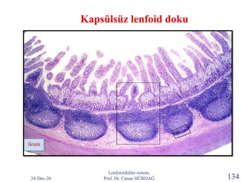 Kapsülsüz lenfoid doku Prof. Dr. Canan HURDAG ileum Lenforetiküler sistem, 24-Dec-20 Prof. Dr. Canan HÜRDAĞ 134