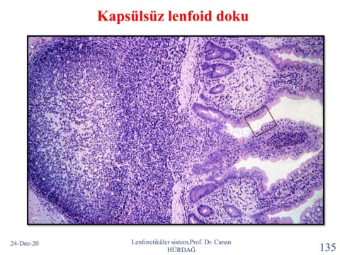 Kapsülsüz lenfoid doku ◼ ileum Prof. Dr. Canan HURDAG 24-Dec-20 Lenforetiküler sistem,Prof. Dr. Canan 135 HÜRDAĞ