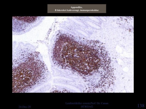 Appendiks, B hücreleri kahverengi, immunperoksidaz Prof. Dr. Canan HURDAG Lenforetiküler sistem,Prof. Dr. Canan 24-Dec-20 HÜRDAĞ 138