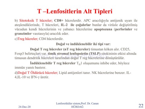 b) Sitotoksik T hücreler; CD8+ hücrelerdir. APC aracılığıyla antijenik uyarı ile