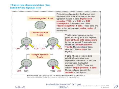 T hücrelerinin olgunlaşması hücre yüzey moleküllerinde değişiklik içerir Prof. Dr. Canan HURDAG Lenforetiküler sistem,Prof. Dr. Canan Downloaded from: StudentConsult (on 4 December 2011 08:55 PM) 30 24-Dec-20 HÜRDAĞ © 2005 Elsevier