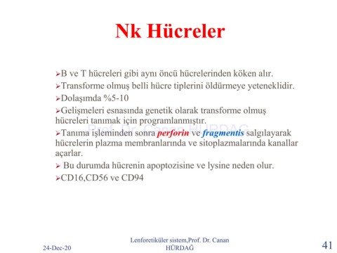 ➢Tanıma işleminden sonra perforin ve fragmentis salgılayarak