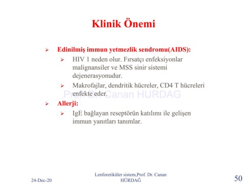 ➢ HIV 1 neden olur. Fırsatçı enfeksiyonlar