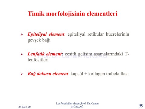 ➢ Lenfatik element: çeşitli gelişim aşamalarındaki T-