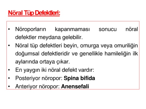 • Nöral tüp defektleri beyin, omurga veya omuriliğin