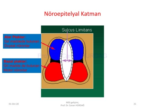 Nöroepitelyal Katman Alar Plaklar: Gri maddede bulunan Duysal nöronlar Prof. Dr. Canan HURDAG Bazal plaklar: Gri madde de bulunan Motor nöronlar MSS gelişimi, 01-Oct-20 21 Prof. Dr. Canan HÜRDAĞ