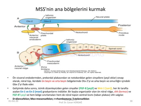 FGF-8'i yeşil ve hem bölge sınırlamaları hem de nöral tüpün ventral kısmı (taban plakası) shh salgılar.