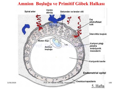 Amnion Boşluğu ve Primitif Göbek Halkası Beden Sapı Y.K. Prof. Dr. Canan HURDA Amnion boşluğu Endometrial epitel 3/30/2020 Prof. Dr. Canan Hürdağ, Organogenez 100 5. Hafta