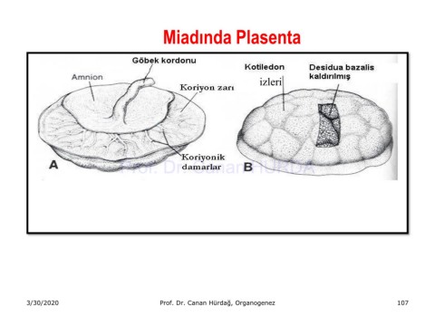 Miadında Plasenta izleri Prof. Dr. Canan HURDA 3/30/2020 Prof. Dr. Canan Hürdağ, Organogenez 107