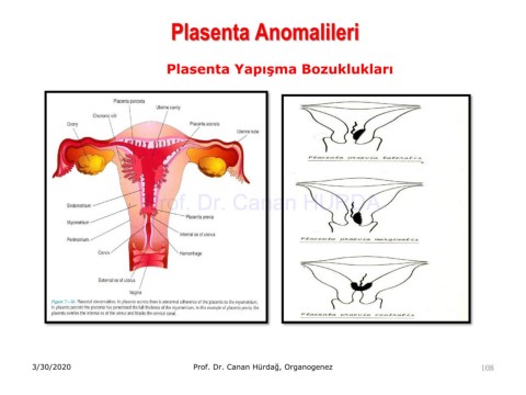 Plasenta Anomalileri Plasenta Yapışma Bozuklukları Prof. Dr. Canan HURDA 3/30/2020 Prof. Dr. Canan Hürdağ, Organogenez 108