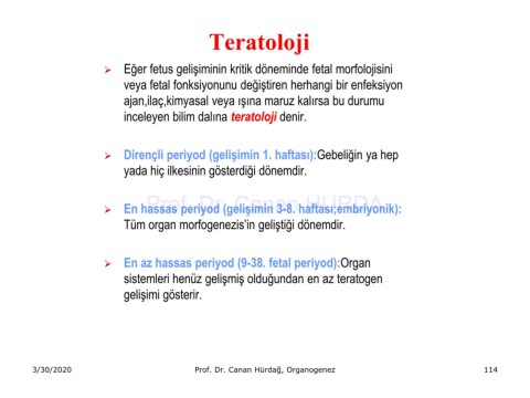 3/30/2020 Prof. Dr. Canan Hürdağ, Organogenez 114