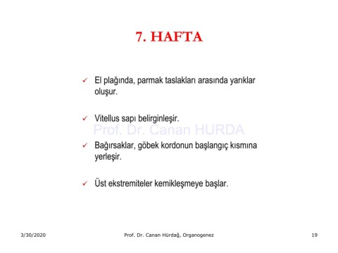 3/30/2020 Prof. Dr. Canan Hürdağ, Organogenez 19