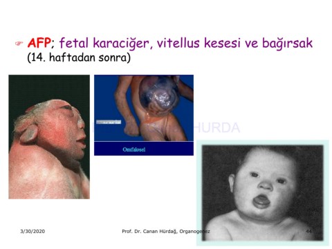 AFP; fetal karaciğer, vitellus kesesi ve bağırsak (14. haftadan sonra) Prof. Dr. Canan HURDA 3/30/2020 Prof. Dr. Canan Hürdağ, Organogenez 44