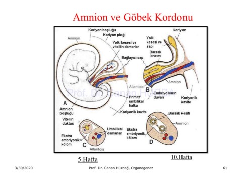Amnion ve Göbek Kordonu Prof. Dr. Canan HURDA 5.Hafta 10.Hafta 3/30/2020 Prof. Dr. Canan Hürdağ, Organogenez 61