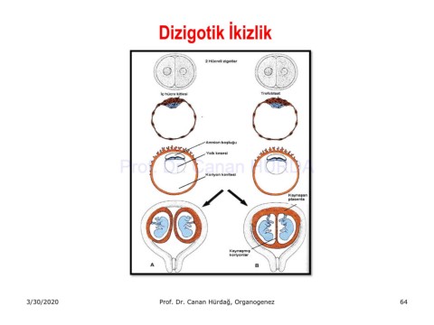 Dizigotik İkizlik Prof. Dr. Canan HURDA 3/30/2020 Prof. Dr. Canan Hürdağ, Organogenez 64
