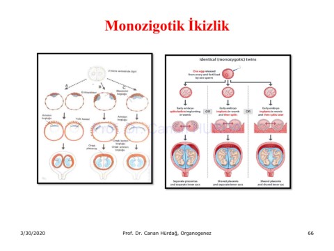Monozigotik İkizlik Prof. Dr. Canan HURDA 3/30/2020 Prof. Dr. Canan Hürdağ, Organogenez 66