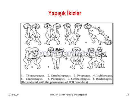 Yapışık İkizler Prof. Dr. Canan HURDA 3/30/2020 Prof. Dr. Canan Hürdağ, Organogenez 72