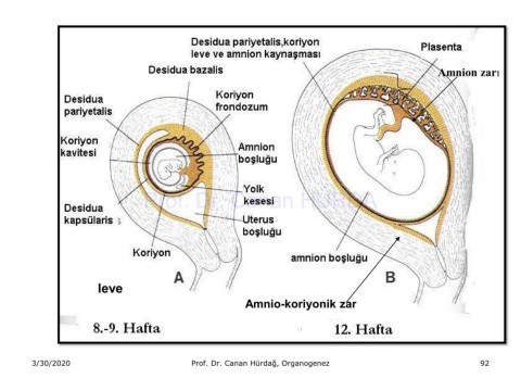 Amnion zarı Prof. Dr. Canan HURDA leve Amnio-koriyonik zar 3/30/2020 Prof. Dr. Canan Hürdağ, Organogenez 92