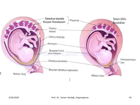 Desidua bazalis İntervillöz Koryon frondozum boşluklar Koryon Leve Prof. Dr. Canan HURDA 5.Hafta 22.Hafta 3/30/2020 Prof. Dr. Canan Hürdağ, Organogenez 93