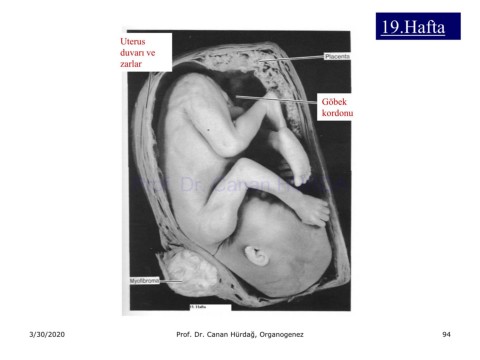 19.Hafta Uterus duvarı ve zarlar Göbek kordonu Prof. Dr. Canan HURDA 3/30/2020 Prof. Dr. Canan Hürdağ, Organogenez 94
