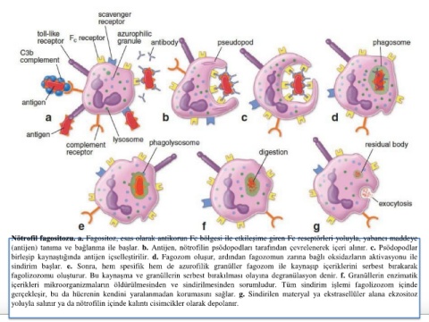 (antijen) tanıma ve bağlanma ile başlar. b. Antijen, nötrofilin psödopodları tarafından çevrelenerek içeri alınır. c. Psödopodlar