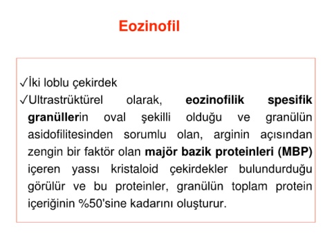 zengin bir faktör olan majör bazik proteinleri (MBP)