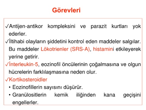 ✓İnterleukin-5, eozinofil öncülerinin çoğalmasına ve olgun