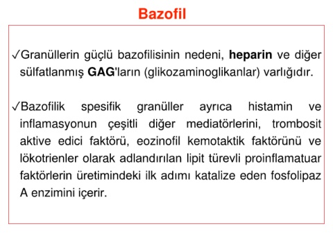 ✓Granüllerin güçlü bazofilisinin nedeni, heparin ve diğer