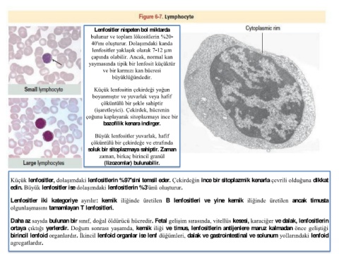 edin. Büyük lenfositler ise dolaşımdaki lenfositlerin %3'ünü oluşturur.